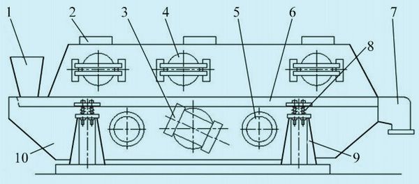 另一类是振动部分与电机分离的箱式激振器固定在流化床一端的板弹簧式,振动和传动机构复杂, 造价高, 一般应用于大尺寸流化床干燥器中,操作稳定,流化态均匀。