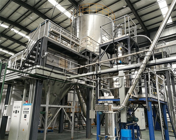 血浆蛋白是血浆中主要的固体成分,含量为60~80g/L,血浆蛋白质种类繁多,功能各异。国内动物蛋白产业正处于一个迅速发展阶段,动物蛋白作为饲料添加剂大都应用于饲料生产,而应用于食品中仍处在较低水平。猪血中含丰富的蛋白质,素有“液体肉”之美称,猪血深加工项目具有广阔前景。血浆血球蛋产品常年在饲料行业应用,近年向食品级延伸也有着乐观的市场前景。该生产线由供料系统、介质循环系统、空气加热净化系统、干燥塔系统、收料系统、控制系统等多个系统整合而成。主塔系统集中了目前喷雾干燥工程的好的技术,喷干机组的收料系统由旋风分离器+布袋除尘器组合形成。旋风采用高气量有效率旋风进行收集,其收粉率能达到96左右分,而布袋除尘器是针对蛋类除尘专门设计的优化设备,能使物料与风进行分离并沉降,布袋为拒水防油防静电布袋,过滤目数可达500目以上。